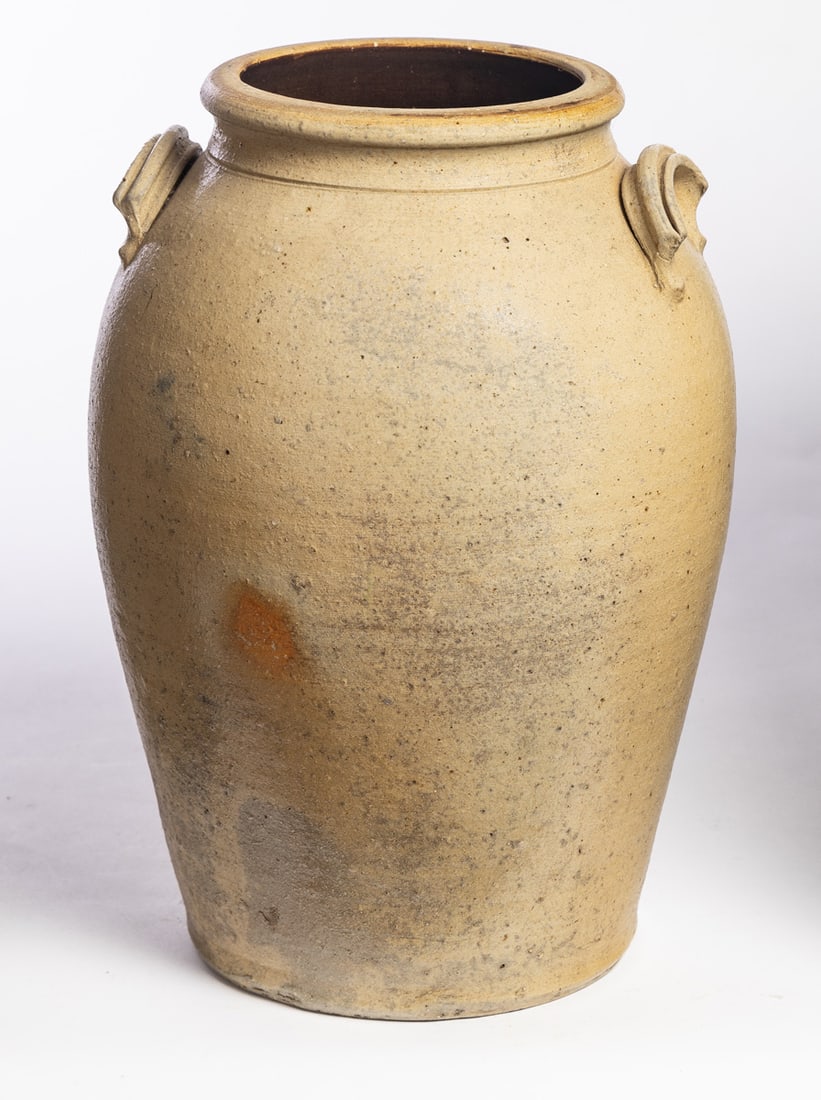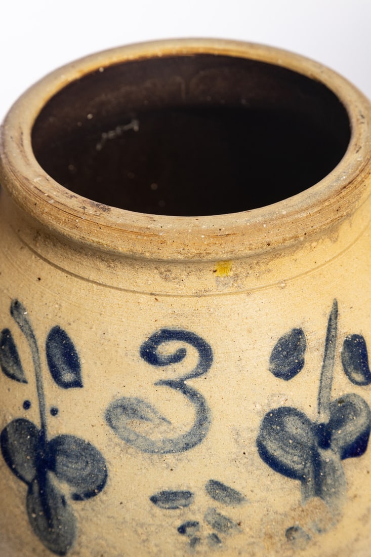 Ohio, mid-late-19th century. Three-gallon jar with cobalt decoration and distinctive handles. 13.5" high. Provenance: the collection of the late Jo Louise Brown, Zoar, Ohio. In-house shipping is available for this lot. Please see our terms for details.