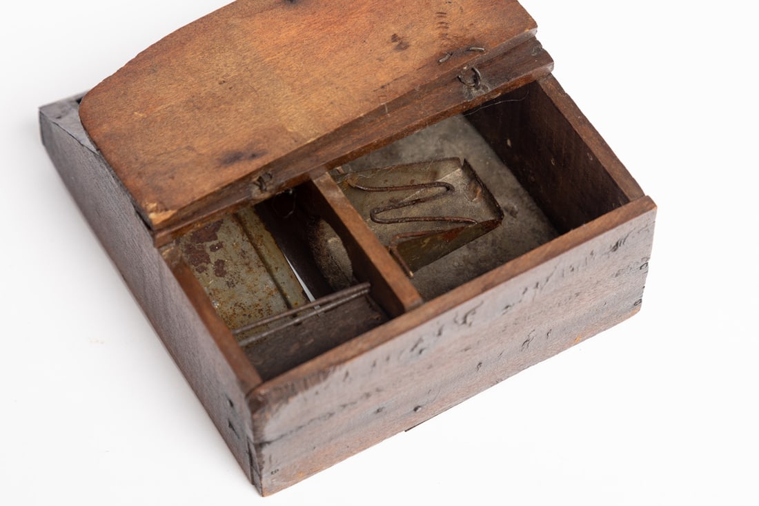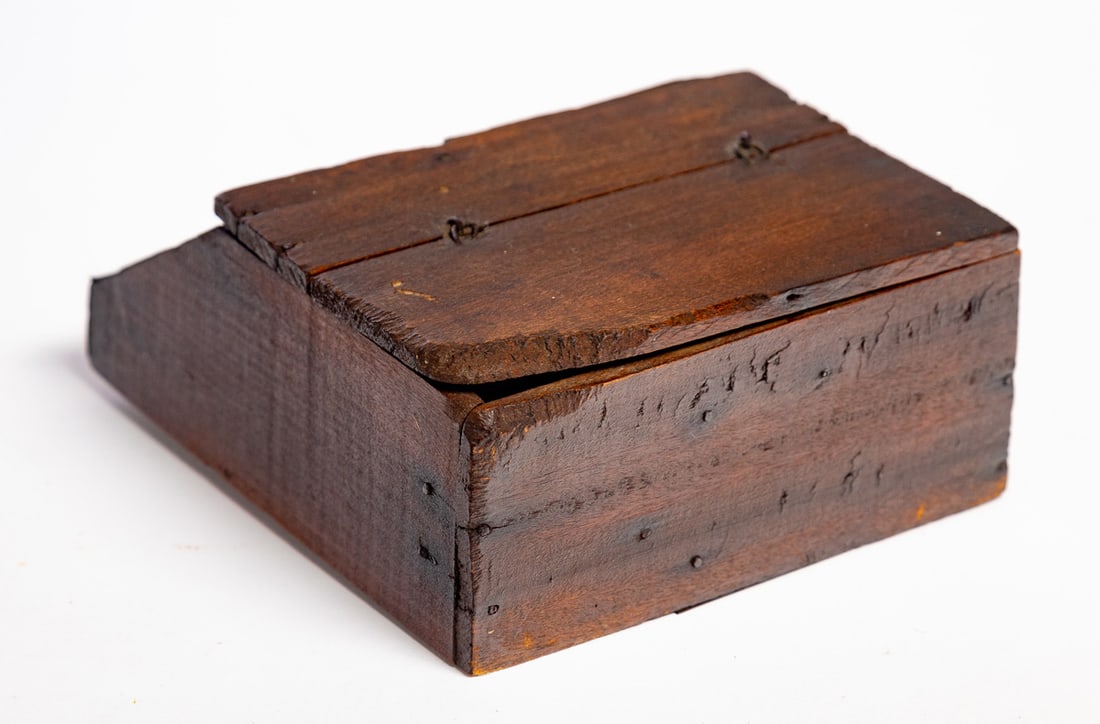 American, 19th century, tin and poplar. 2.5" high, 5.5" wide, 6.25" deep. Provenance: the collection of the late Jo Louise Brown, Zoar, Ohio. In-house shipping is available for this lot. Please see our terms for details.