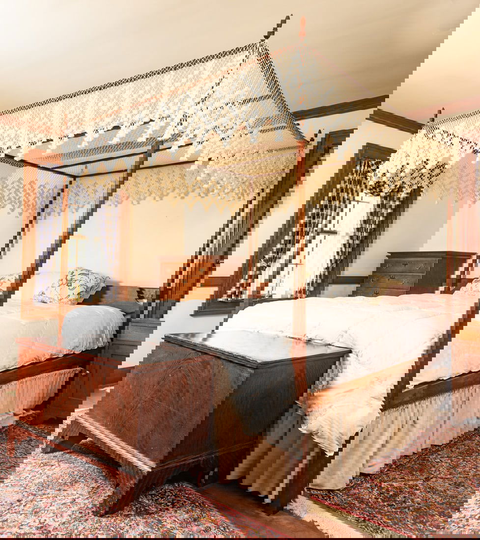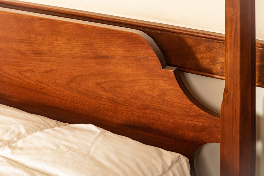 20th century, cherry. King size, with tester. 86.75" high. Provenance: the collection of the late Jo Louise Brown, Zoar, Ohio. Pickup or freight shipping is required for this lot. Please see our terms for details.