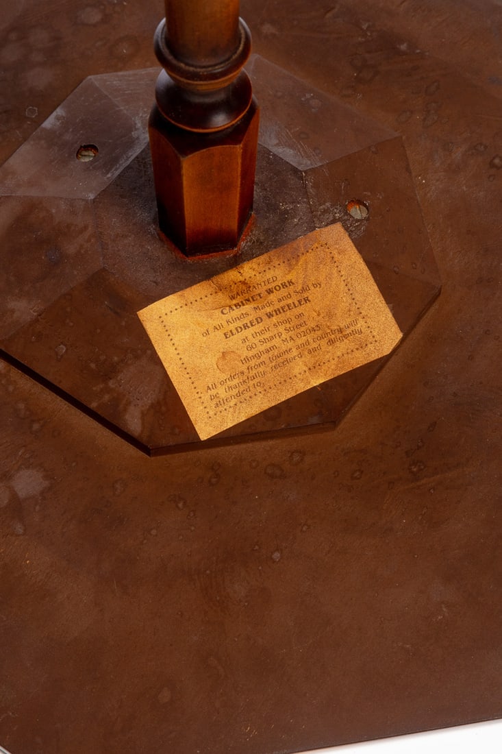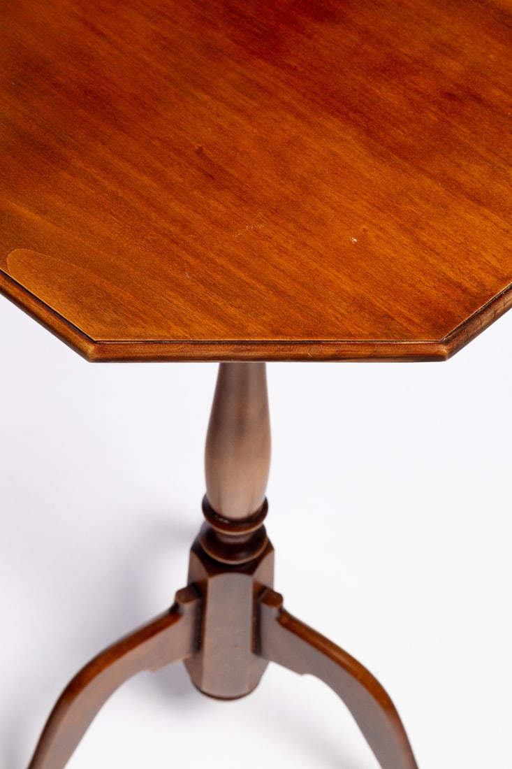 Eldred Wheeler, 20th century cherry. Octagonal top on a turned standard and tripod base. 26" high. Provenance: the collection of the late Jo Louise Brown, Zoar, Ohio. Pickup or freight shipping is required for this lot. Please see our terms for details.