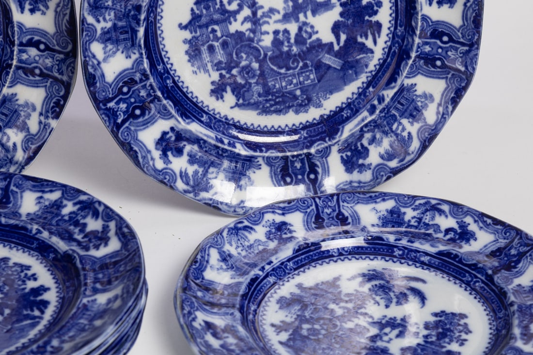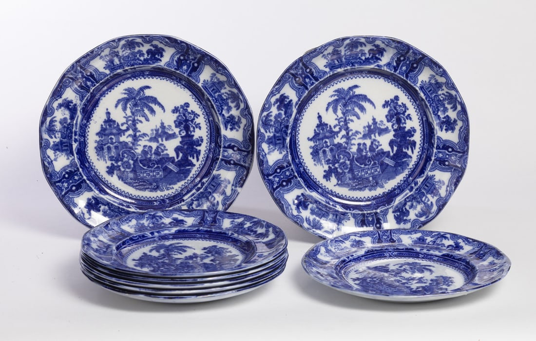 Adams, England, 2nd half-19th century. Two 10" plates and six 9" plates. Provenance: the collection of the late Jo Louise Brown, Zoar, Ohio. In-house shipping is available for this lot. Please see our terms for details.