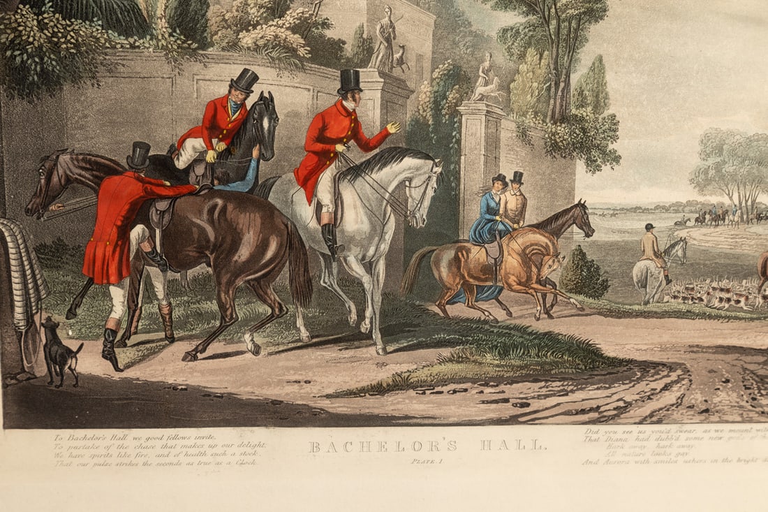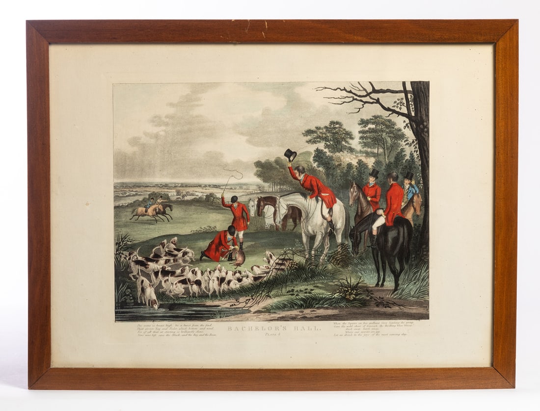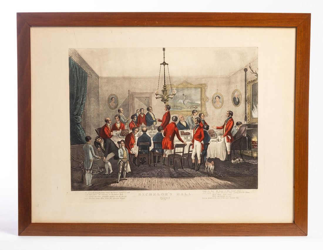 Handcolored engravings after Francis Calcraft Turner (1782-1846). The suite of six prints is entitled "Bachelor’s Hall." Included here are plates 1, 4, 5, and 6. In matching frames. 16.5" high, 21.5" wide (overall). Provenance: the collection of the late Jo Louise Brown, Zoar, Ohio. In-house shipping is available for this lot. Please see our terms for details.