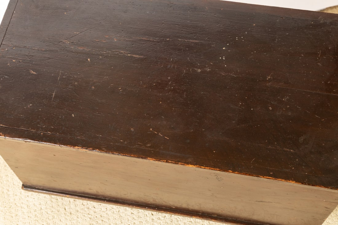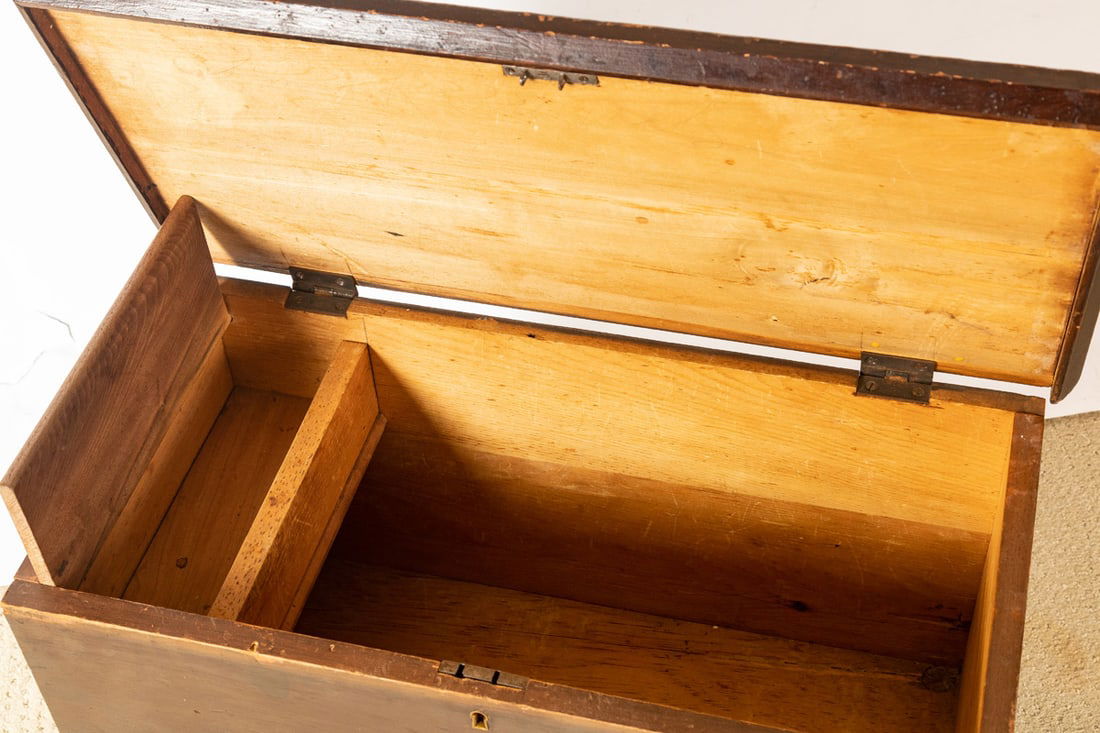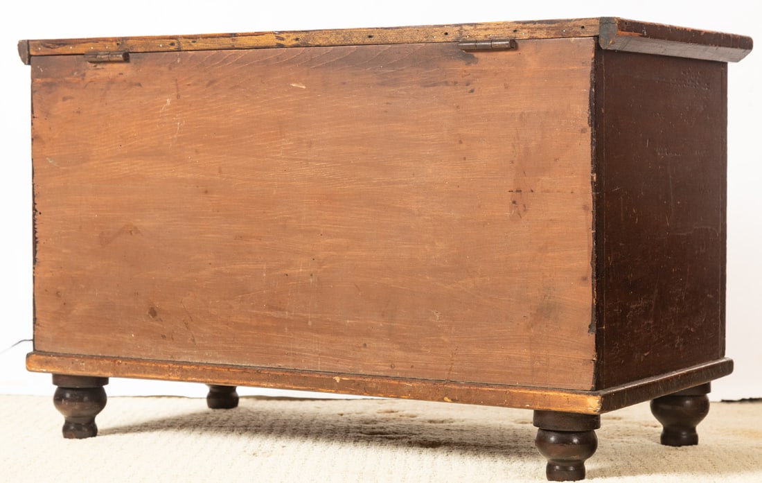 American, 19th century, pine. Interior till and turned feet. 18" high, 26" wide, 13" deep. Provenance: the collection of the late Jo Louise Brown, Zoar, Ohio. In-house shipping is available for this lot. Please see our terms for details.