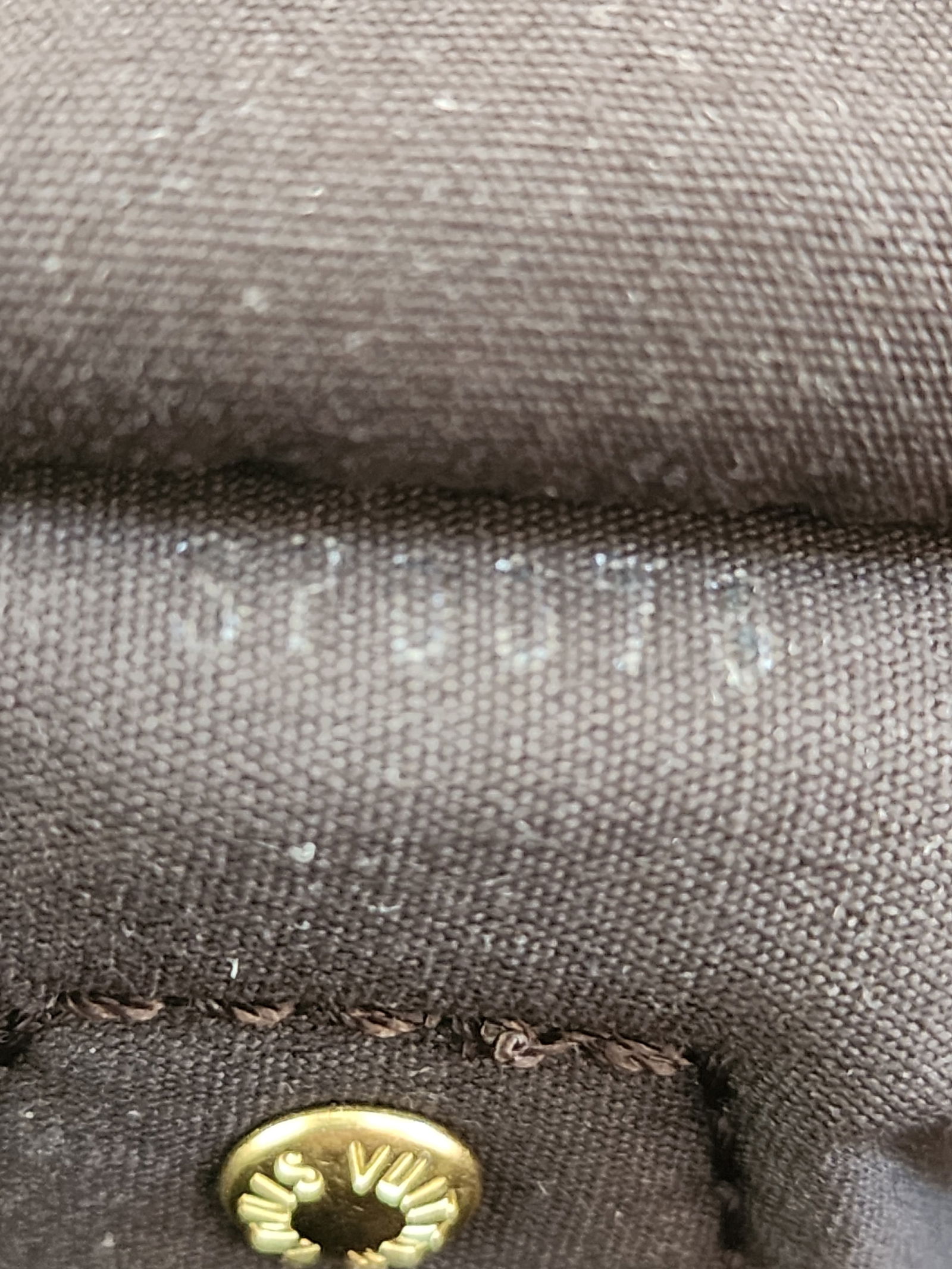 France, 21st century. Linen bag with double handles and a crossbody strap. Comes with matching wallet. 7"h. 11"w. 7"d. Condition: Good – some minor wear.