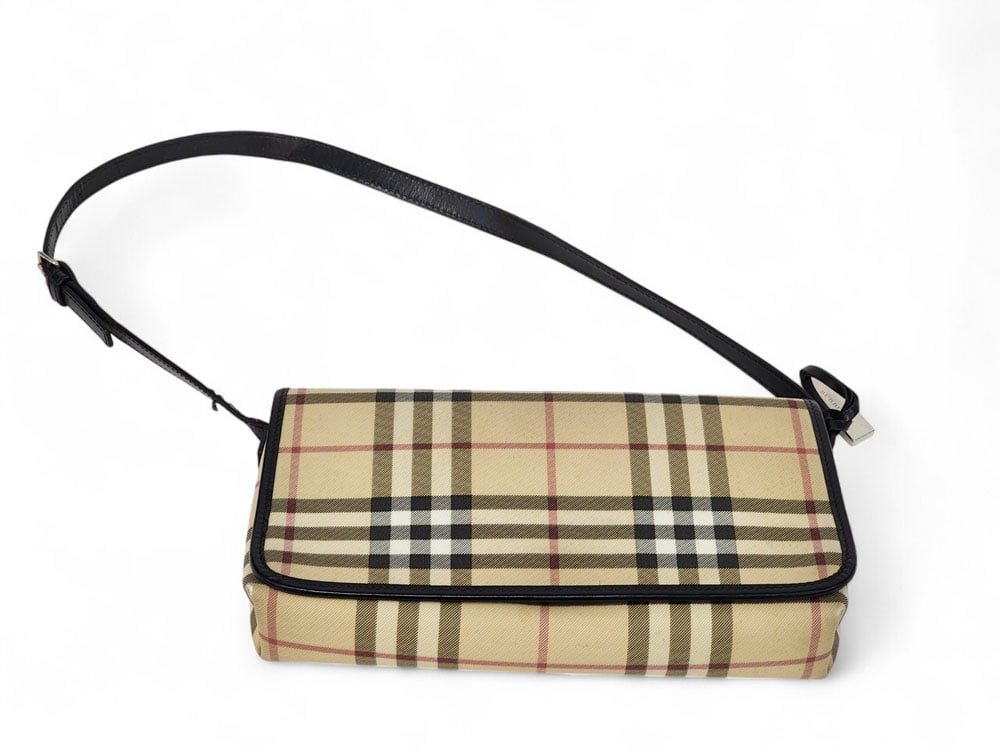 Italy, 21st century. One main compartment, one zippered lining compartment, snap closure. 6"h. 11"w. 2"d. Condition: Good with very slight wear