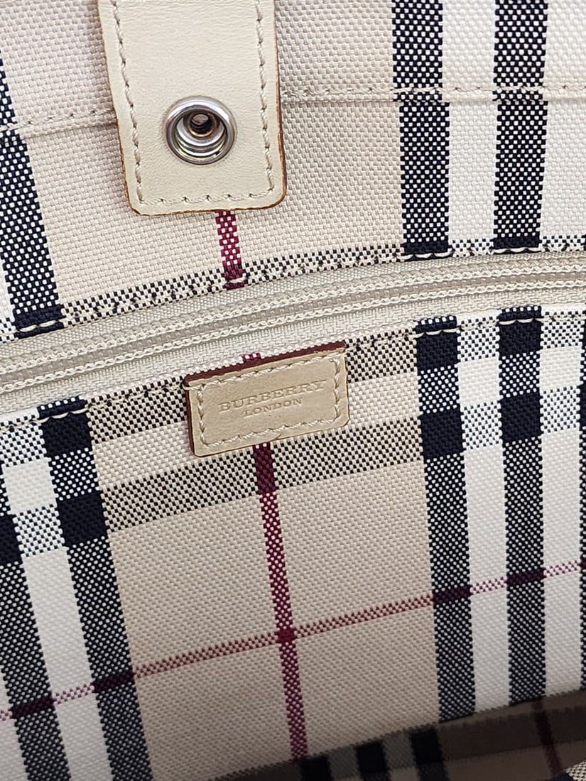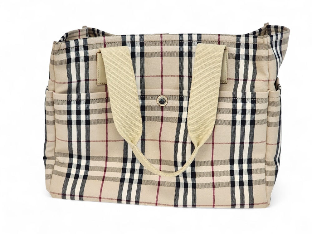 Italy, 21st century. Large canvas tote with exterior pockets and woven straps. 12"h. 16"w. 6"d. Condition: Good with very slight wear