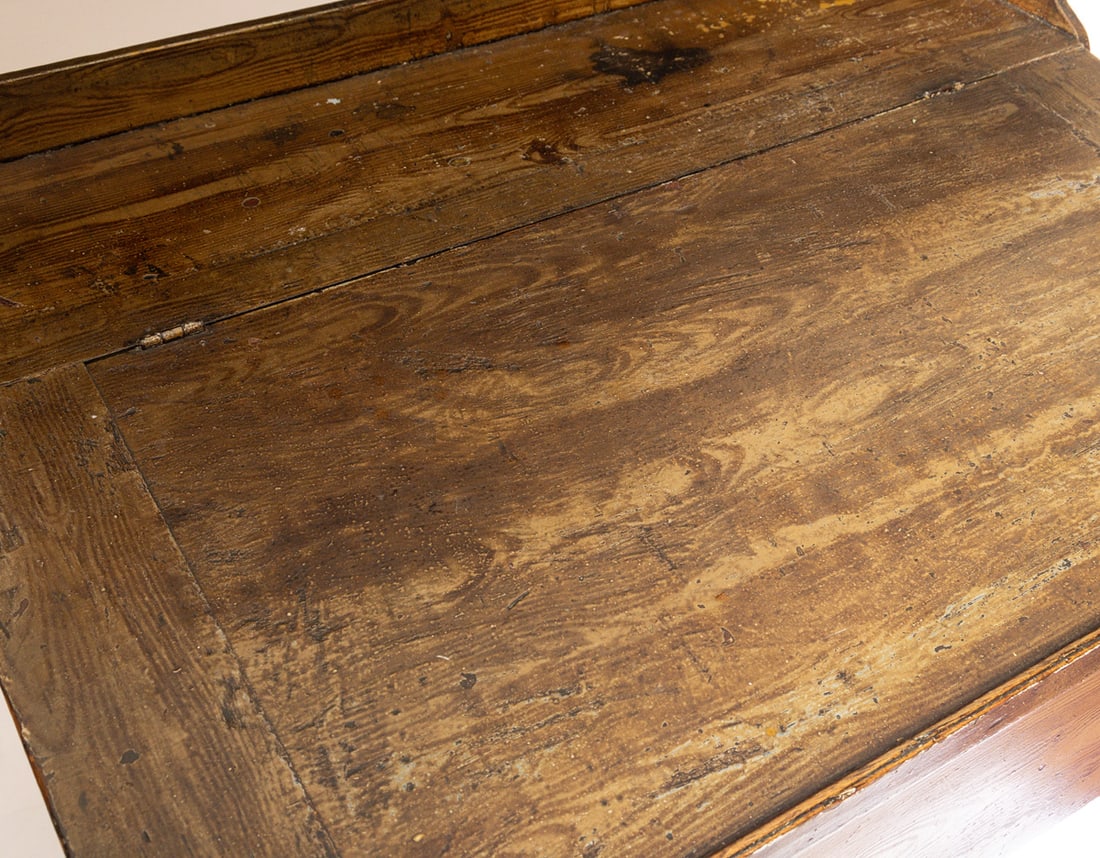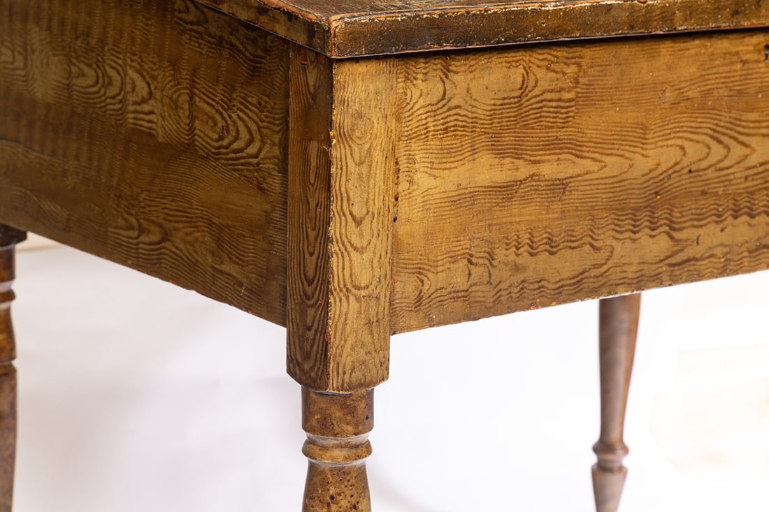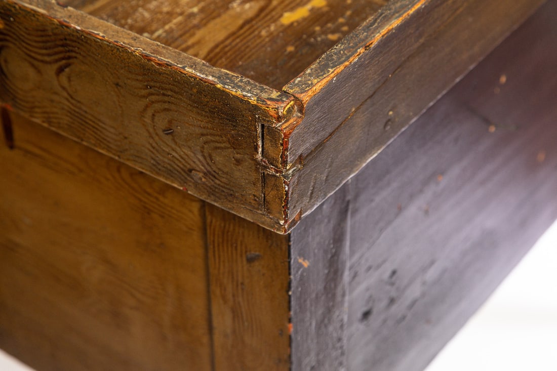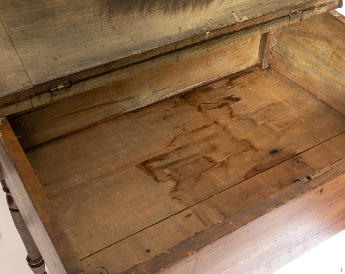 American, 1840s. Dovetailed gallery, turned legs, and original olive and brown grain paint. 36" high, 36.25" wide, 25.5" deep. Provenance: the collection of the late Jo Louise Brown, Zoar, Ohio. Pickup or freight shipping is required for this lot. Please see our terms for details.