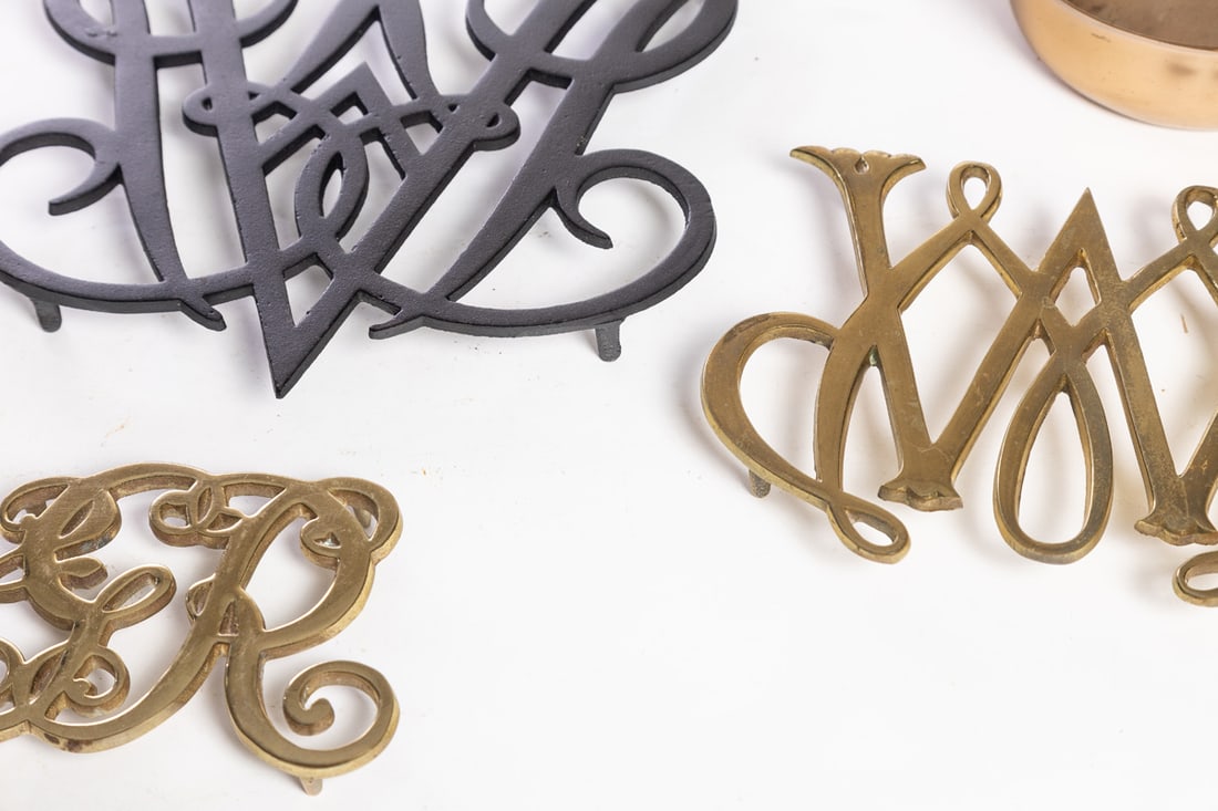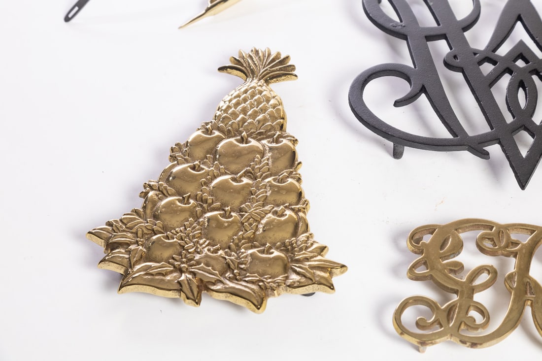 Williamsburg, miscellaneous group including miniature candlesticks, trivets, a doorstop, and more. Doorstop is 11.5" high. Provenance: the collection of the late Jo Louise Brown, Zoar, Ohio. In-house shipping is available for this lot. Please see our terms for details.