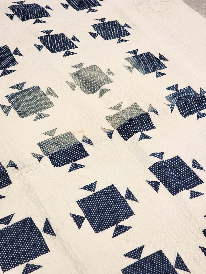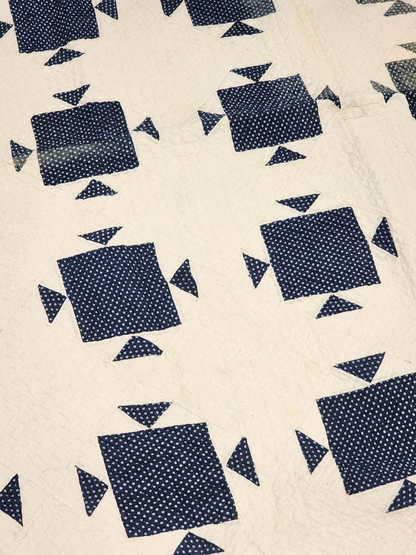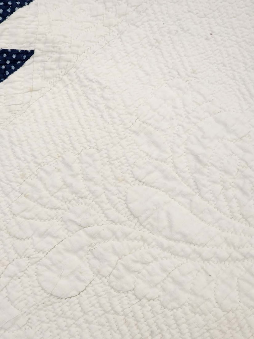 Sarahsville, Noble County, late 19th century. Pieced in printed blue and white, and quilted with a princess feather pattern. 93" by 87". According to Mrs. Brown’s notes, this is from the Miller family. Provenance: the collection of the late Jo Louise Brown, Zoar, Ohio. In-house shipping is available for this lot. Please see our terms for details.